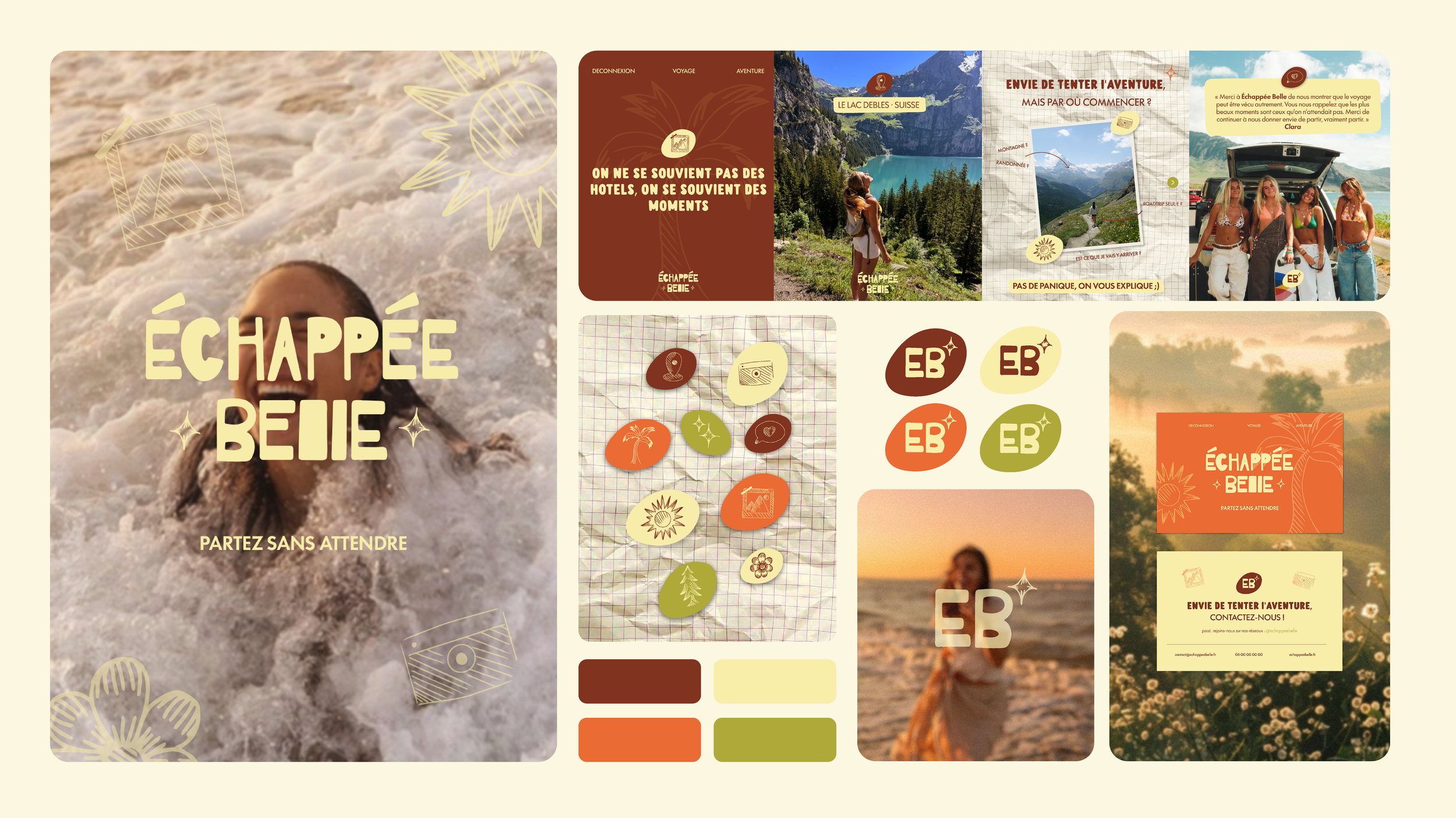 L’objectif était de créer une identité visuelle capable de traduire l’univers d’Échappée Belle : une parenthèse douce, apaisante et hors du temps.